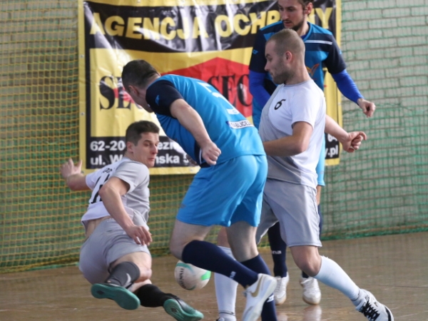 W niedzielę Akademia Europejczyka Kłecko pokonała Hotel Awo 3-2. Już tylko prawdziwy kataklizm może odebrać tytuł najlepszej drużyny Gnieźnieńskiej Ligi Futsalu SBG piłkarzom z Kłecka. Są jedyną ekipą, która odniosła komplet zwycięstw. Hotel Awo mocno zaczął obejmując prowadzenie , ale już po chwili piłka trafiła do przeciwległej siatki i był remis. Kontuzja jedneo z zawodników zapowiadała osłabienie drużyny, ale ku zaskoczeniu zawodnik wrócił na boisko i srzelił drugą bramkę. Od tego momentu gra jeszcze bardziej zaostrzyła się, znów zaczęło iskrzyć nie tylko na boisku, ale i poza nim. Gracze co chwilę mieli pretensje do arbitrów. Boisko opuścił goalkeeper Hotelu Awo. Na 5 minut przed końcem sytuacja wymknęła się Akademii z rąk. Najpierw za ewidentny faul, rzut karny na bramkę zamienił Gracjan Goździk, a po chwili arbiter podyktował kolejny – tym razem przedłużony rzut karny – za piąty faul drużyny z Kłecka. Jednak tym razem były gracz Mieszka przestrzelił i wynik był cały czas kwestią otwartą. Gdy wiele wskazywało, że oba zespoły podzielą nie punktami, jeden błąd przed własną bramką kosztował gnieźnieńską ekipę utratę trzeciego gola, za sprawą Adama Niedzielskiego. Do końca wynik juz nie uległ zmianie i kłecczanie mogli po ostatnim gwizdku fetować triumf nad najgroźniejszym swoim rywalem.