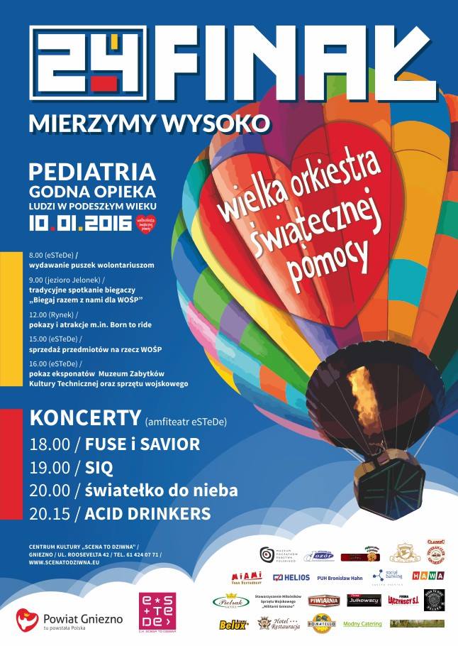 " Biegaj razem dla WOPŚ" rusza w Gnieźnie 10.01.2016 o godz. 9:00 koło Pizzerni Venecja nad Jeziorem Jelonek. Zaczniemy od wspólnego zdjęcia. Skoro 24 finał, to uczestnicy pokonają 24 okrążenia wkoło jeziora (prawie 41 km), co będzie trwało ok 3,5 godziny. Każdy chętny w dowolnym momencie może dołączyć do biegających i pokonać dowolny dystans. W czasie trwania akcji wolontariusze będę zbierali do puszek datki dla WOPŚ.