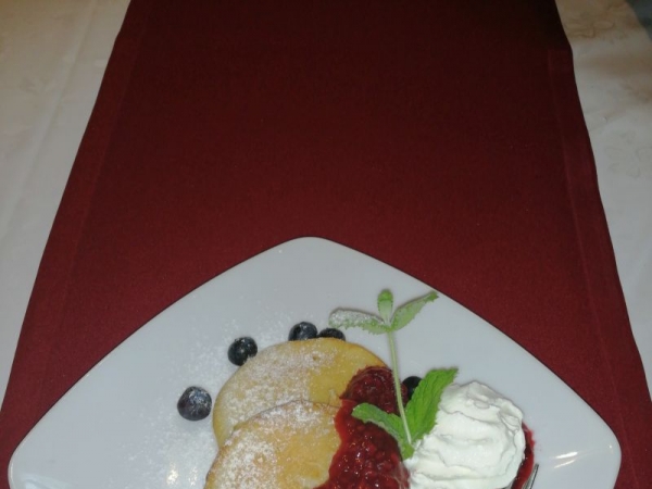 Do każdego dania obiadowego - deser dnia w cenie 5 zł./os. I tutaj serwujemy m.in.: lodowy pucharek, racuszki z jabłkiem i frużeliną malinową lub szarlotkę własnego wypieku.