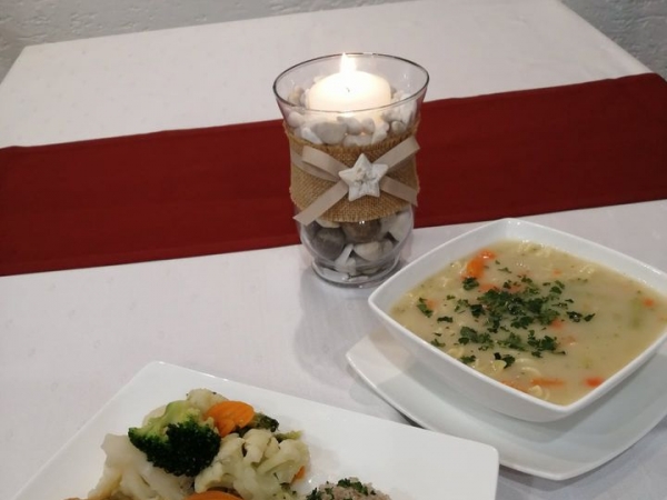 * zupę kalafiorową z makaronem