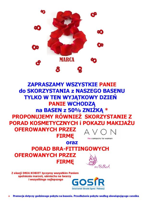 Tylko tego dnia każda z PAŃ, która odwiedzi nasz basen na zakupiony bilet otrzyma 50% zniżki.*