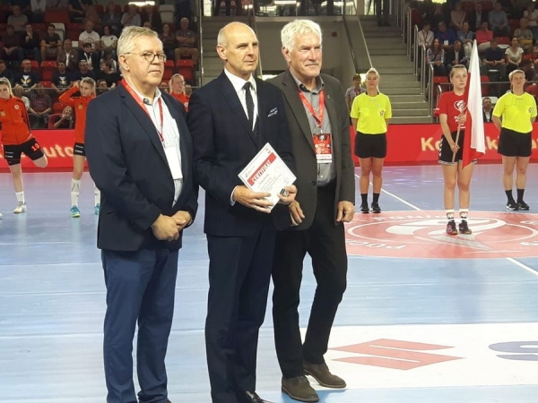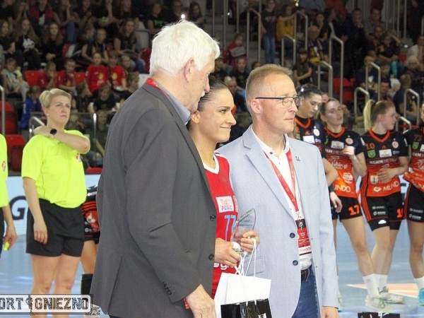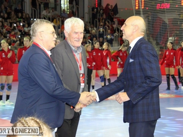 Przed meczem doszło do miłej uroczystości. Złotą odznaką Związku Piłki Ręcznej w Polsce uhonorowany został gnieźnianin Piotr Brenk, wieloletni nauczyciel wychowania fizycznego, a także trener i sędzia piłki ręcznej. Podczas sobotniego pojedynku Brenk pełnił funkcję delegata z ramienia związku.