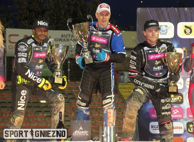 Organizatorzy turnieju nie mieli w sobotni wieczór w Gnieźnie łatwego zadania. Ciężkie chmury krążące nad stadionem zwiastowały deszcz i nie zachęcały kibiców do przybycia na trybuny. Na domiar złego jeszcze przed zawodami doszło do ograniczeń w dostawie prądu i nie działało nagłośnienie oraz pneumatyczne bandy. W tej sytuacji hymn Polski odśpiewano a’capella, a kiedy już poradzono sobie z napompowaniem band rozpoczęto zmagania. Wkrótce uruchomiono także nagłośnienie oraz włączono oświetlenie i rywalizacja mogły już toczyć się bez przeszkód. Od początku jej ton nadawało dwóch zawodników.: Jarosław Hampel i znający dobrze gnieźnieński tor Antonio Lindbaeck. Po trzech seriach tylko ci dwaj żużlowcy mieli komplet punktów na swych kontach. Co ciekawe zanim doszło do ich bezpośredniego starcia, zostali pokonani. Polak w wyścigu XIV przez Leona Madsena, a Szwed dwa biegi później przez znakomicie spisującego się również w tych zawodach Kaia Huckenbecka. Po czterech seriach Lindbaeck i Hampel prowadzili jednak z identycznym dorobkiem 11 punktów. Wyścig XVII, w którym zmierzyli się już bezpośrednio miał być przedsmakiem finału.
