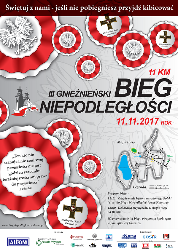 Wszyscy uczestnicy pobiegną w pamiątkowych, biał-czerwonych koszulkach. Start do biegu odbędzie się o godzinie 11:11 spod Katedry. A poprzedzony zostanie odśpiewaniem Hymnu Narodowego.