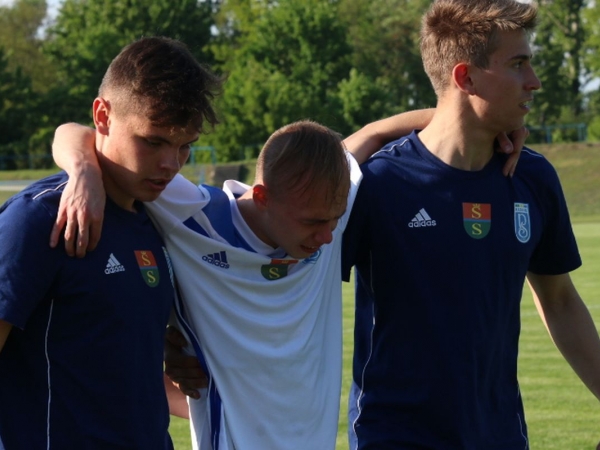 Nie dość, że konstruowanie akcji szło nam niemiłosiernie ciężko, to dodatkowo sytuację skomplikowaliśmy sobie sami czerwoną kartką. Mikołaj Panowicz w 33 minucie, bezpardonowo ściął rywala, czego efektem był czerwony kartonik od arbitra spotkania. Sędzia, który akurat w tym meczu również dostosował się formą do gospodarzy podejmując wiele kontrowersyjnych decyzji, to w tej akurat miał 100-procentową rację. Piłkarz Radunii (co widać na naszym zdjęciu) schodził z boiska z zakrwawioną nogą, niemal płacząc z bólu.