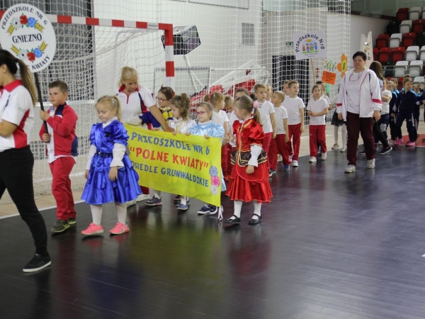 Dziś na Hali im. Mieczysława Łopatki rozpoczęła się 3 dniowa Olimpiada Przedszkoli, podczas uroczystości zapalono znicz olimpijski i odśpiewano hymn Polski:) Podczas dzisiejszych zmagań towarzyszyła nam świetna zabawa, mnóstwo emocji i rywalizacji. Ostatecznie dziś zwyciężyło przedszkole nr15, które weźmie udział w Wielkim Finale w piątek :) jutro dalsza część zmagań ...
