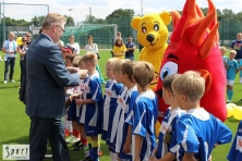 Uroczystego otwarcia boiska, po krótkim swoim wystąpieniu oraz przecięcia biało-czerwonej wstęgi, dokonał Prezydent Miasta Gniezna - Jacek Kowalski, w asyście swojego zastępcy - Czesława Kruczka, Posłów na Sejm RP – Tadeusza Tomaszewskiego i Pawła Arndta, Przewodniczącej Rady Miasta Gniezna – Marii Kocoń oraz zawodniczki drużyny Szkoły Futbolu Gniezno - Kingi Połatyńskiej. Zaraz po uroczystym otwarciu, ksiądz Kanonik dr Jan Szrejter, dokonał poświęcenia nowego obiektu.