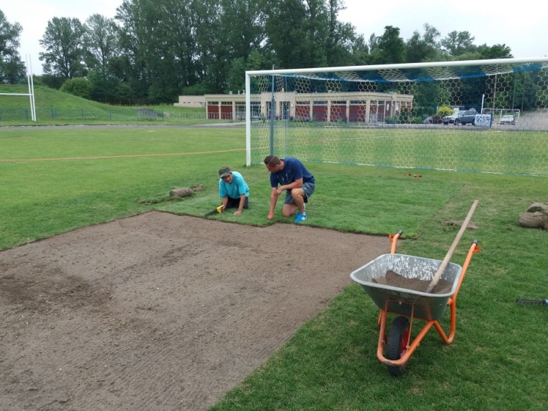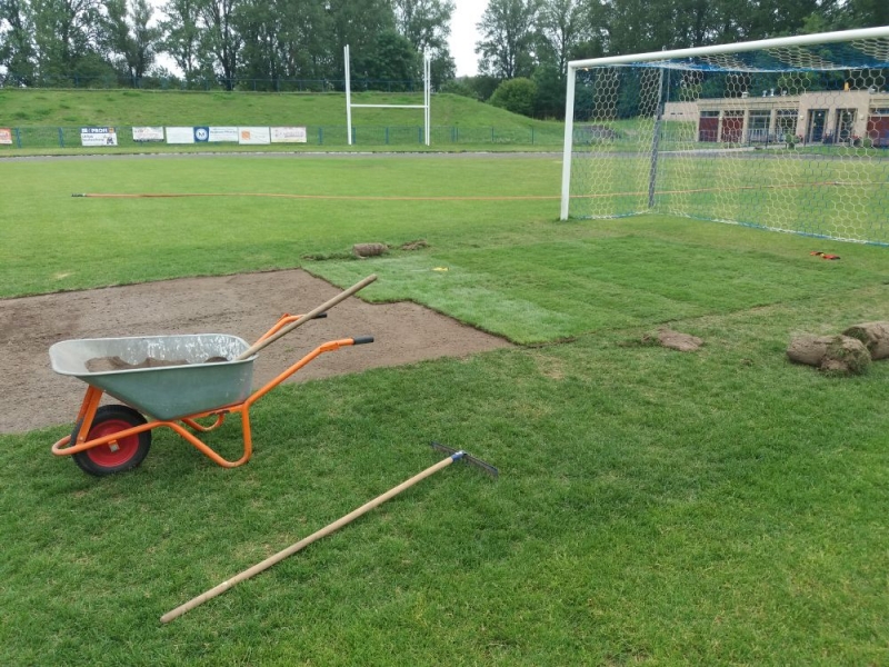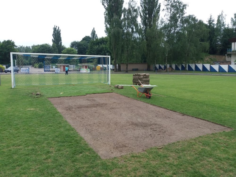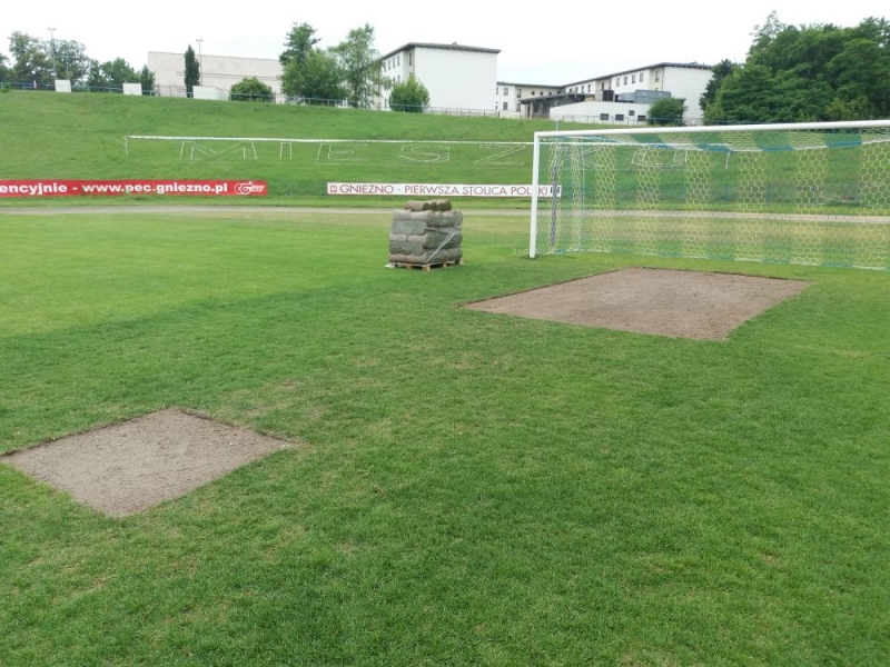- dosiew wgłębny na długości boiska i szerokości ok. 40 m w centralnej części płyty