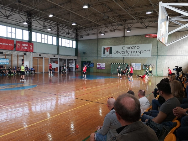 Po kwadransie gospodarze prowadzili 10:8. Kolejne dwa trafienia padły łupem gnieźnieńskich Wilków. Następnie trzynastą bramkę dla gospodarzy z rzutu karnego wywalczył Łukasz Krakowiak. Goście natomiast mieli problem z wprowadzeniem piłki do bramki strzeżonej przez Dariusza Zarzyckiego. Gnieźnianie też nie wykorzystywali wszystkich szans, lecz mimo to zdołali zwiększyć przewagę. W 25. minucie wynosiła ona siedem trafień. Właśnie taką różnicą gnieźnianie prowadzili do przerwy – 18:11.