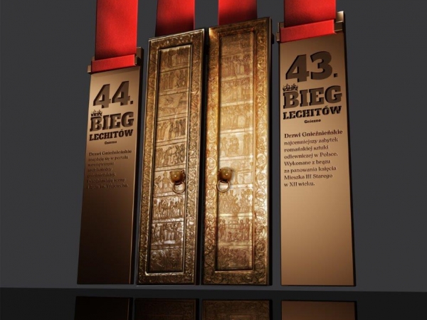 Od dłuższego czasu pracujemy nad bardzo ciekawym projektem medalu na dwie najbliższe edycje Biegu Lechitów. Kontynuując wątki historyczne, które towarzyszą Biegowi Lechitów, po otrzymaniu zgody Archidiecezji Gnieźnieńskiej na wykorzystanie wizerunku Drzwi Gnieźnieńskich, zaplanowaliśmy, że dla każdego uczestnika dwóch najbliższych edycji biegu medale, które stworzą miniaturę tych Drzwi.
