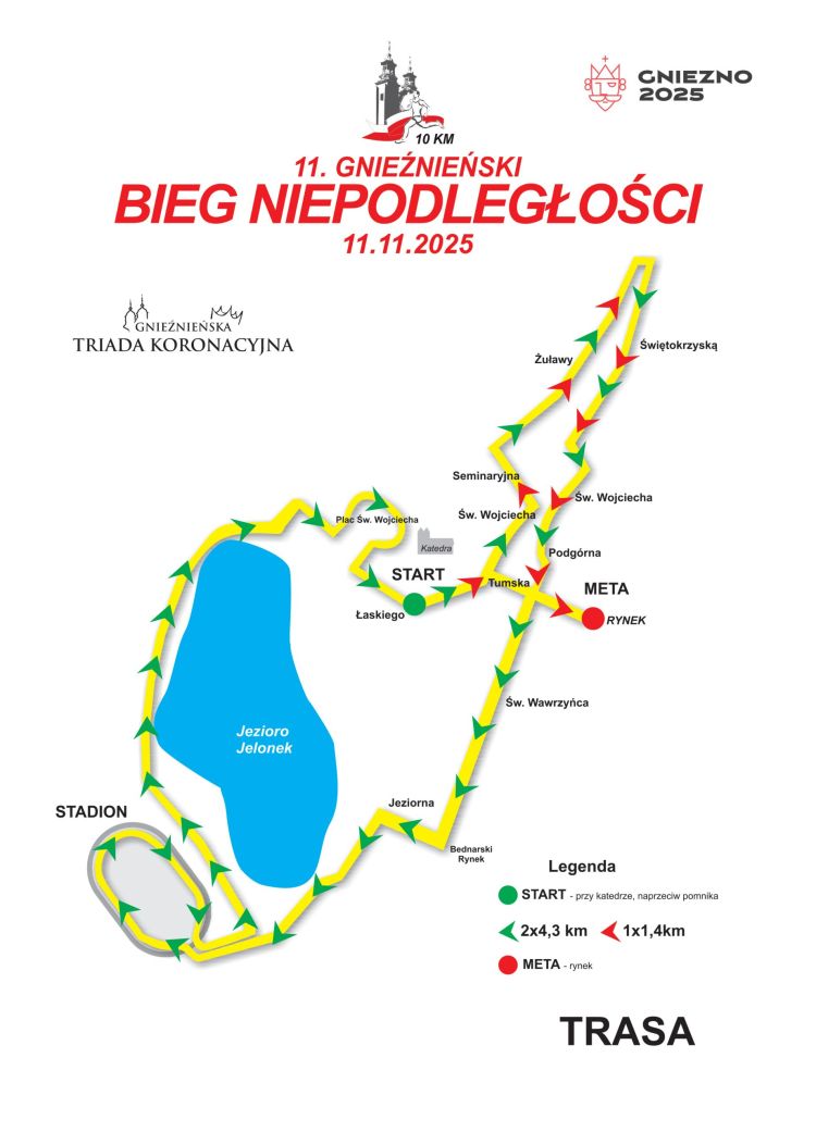 Dodatkowo bieg będzie przebiegał ścieżką wokół Jeziora Jelonek oraz przez stadion Mieszka i Skwer Speyer.