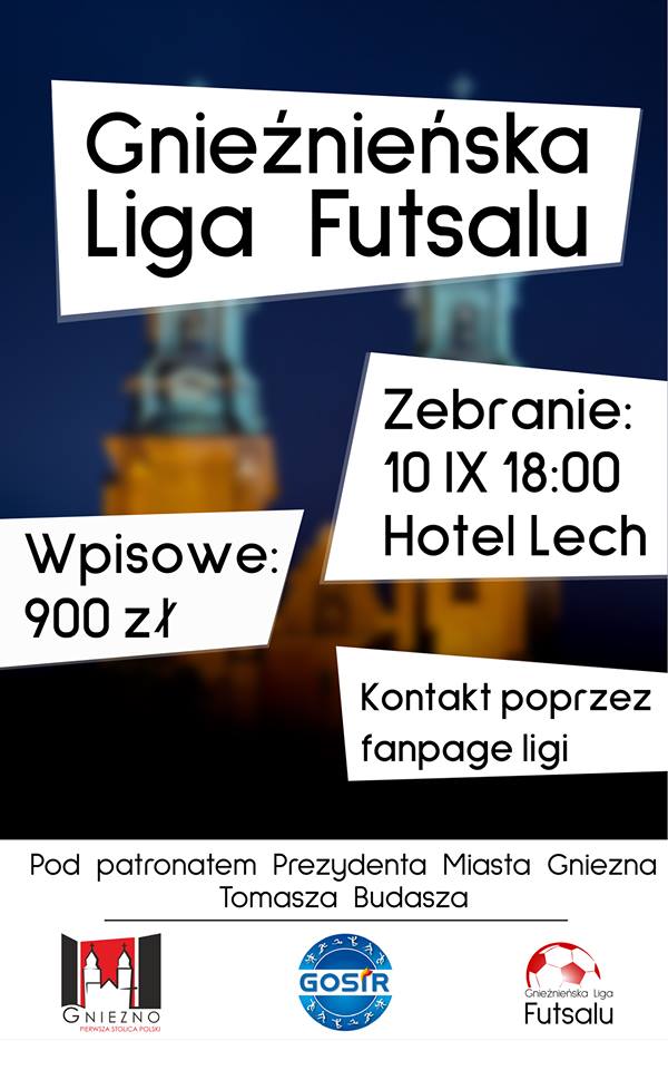Organizator rozgrywek Gnieźnieńska Liga Futsalu jest gotowy na przyjęcie od 8 do 16 drużyn.