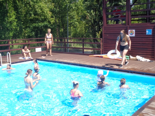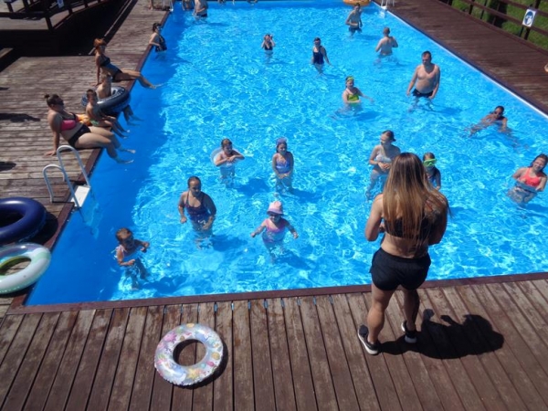 Były konkurencje sportowe, zajęcia z aqua-aerobiku, zabawy dla dzieci. Udział w nich mógł wziąć każdy kto tego dnia / w sobotę/ korzystał z uroków pięknej pogody i relaksował się na naszej plaży na basenach odkrytych.