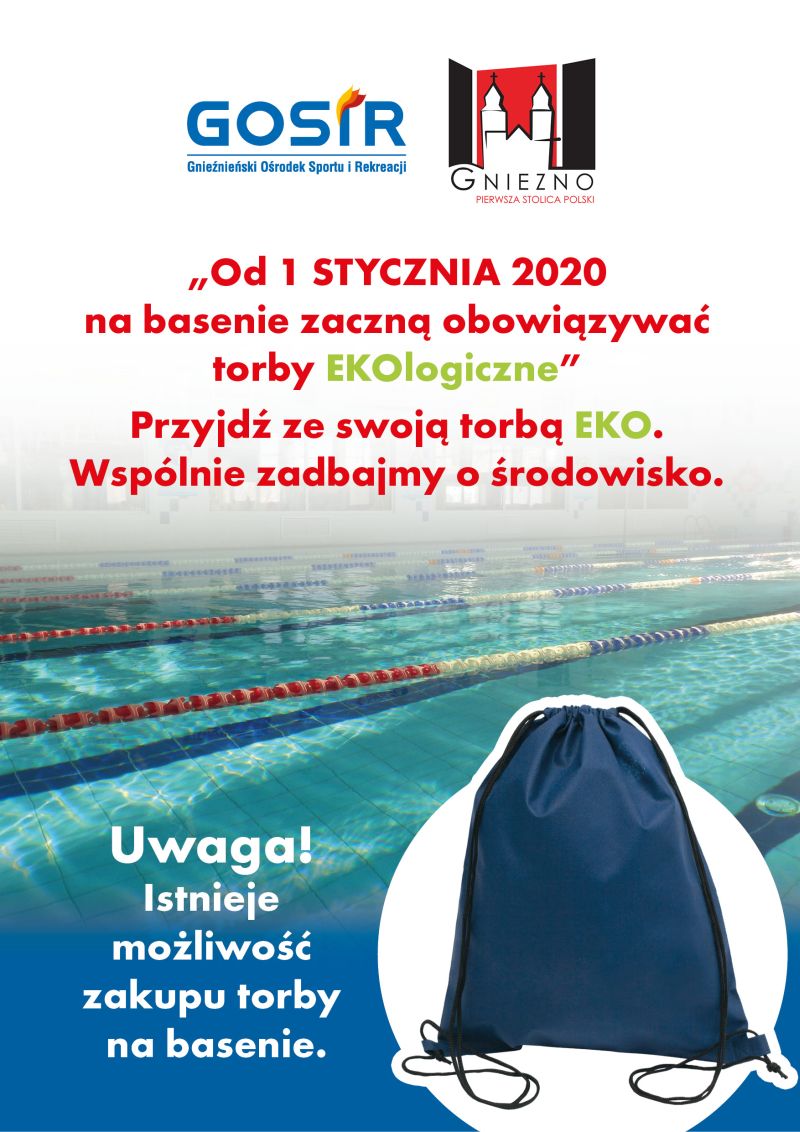 Na basen można przyjść ze swoja torbą EKO lub zakupić ją na miejscu.