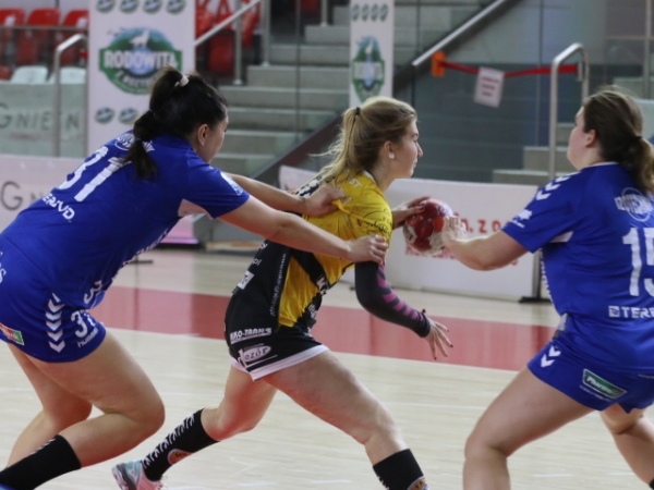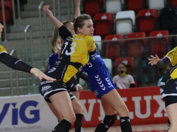 Pojedynek trzeciej z czwartą drużyną ligowej tabeli zapowiadał się niezwykle atrakcyjnie i rzeczywiście tak było. Gnieźnianki długo się rozkręcały i dopiero po kwadransie udało się wyjść po raz pierwszy na prowadzenie. Duża w tym zasluga kapitalnie dziś dysponowanej Moniki Łęgowskiej, która siała spustoszenie silnymi rzutami i cały mecz zakończyła z 11 trafieniami. W Jutrzence dla odmiany ciężar zdobywania bramek wzięły na swoje barki od początku Adrianna Warda i Agnieszka Jałoszewska i to z ich strony groziły problemy.